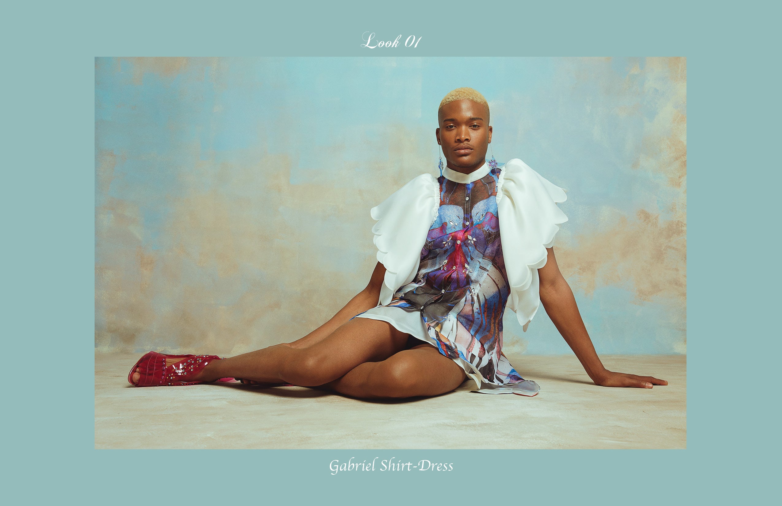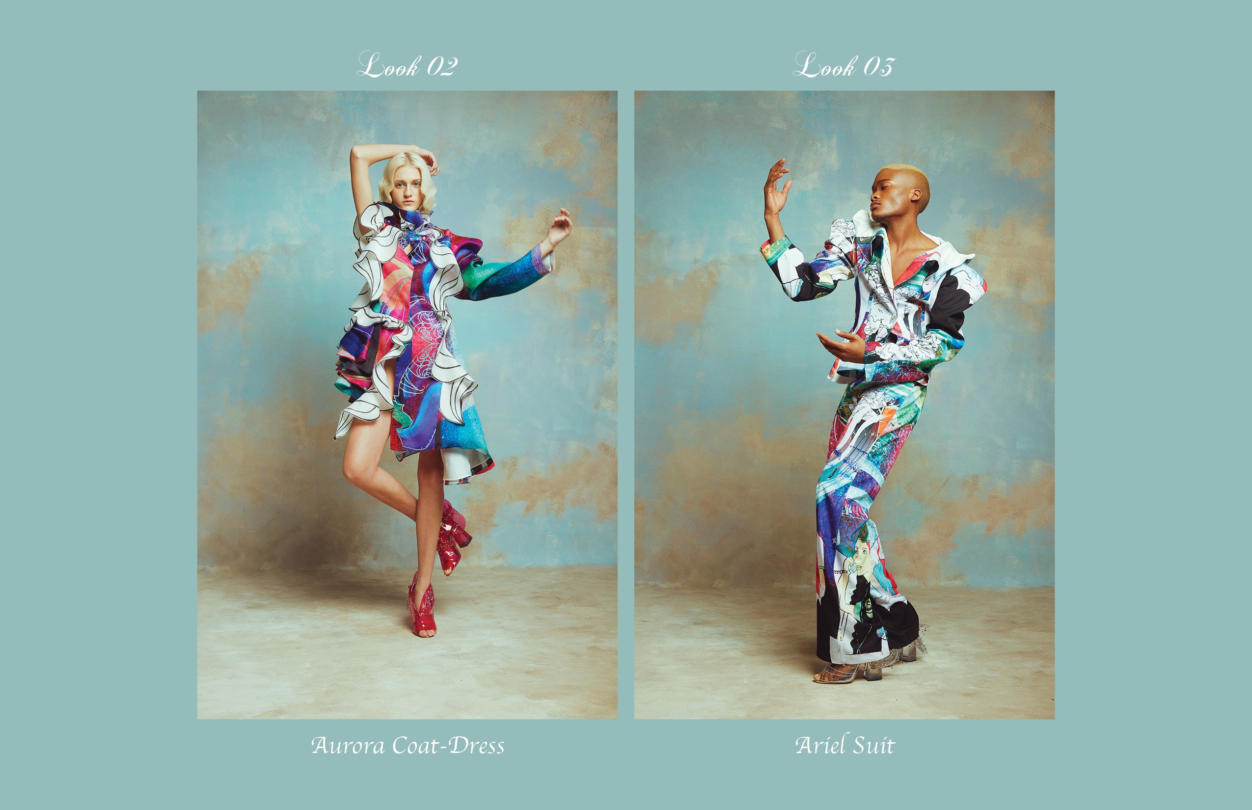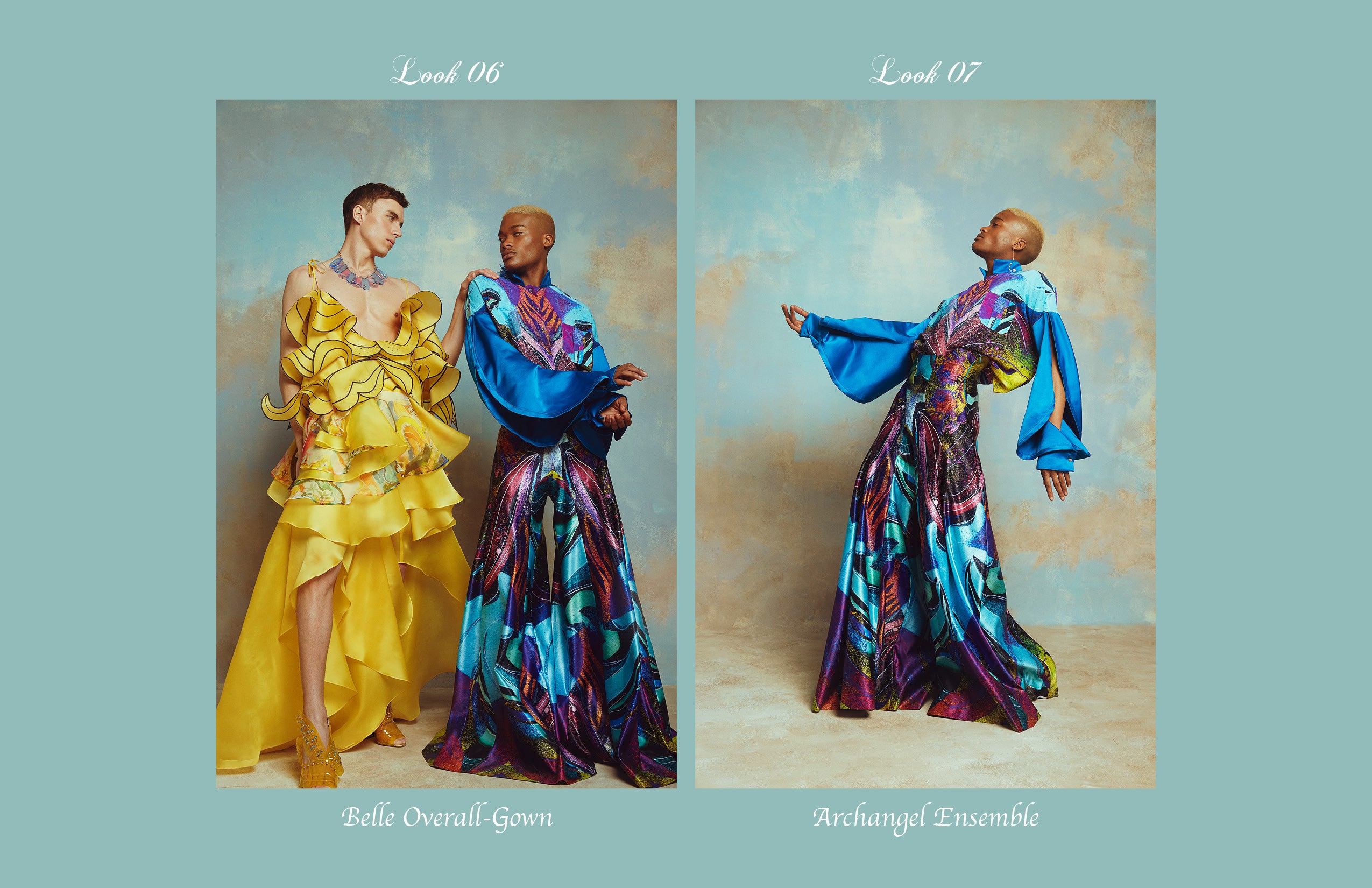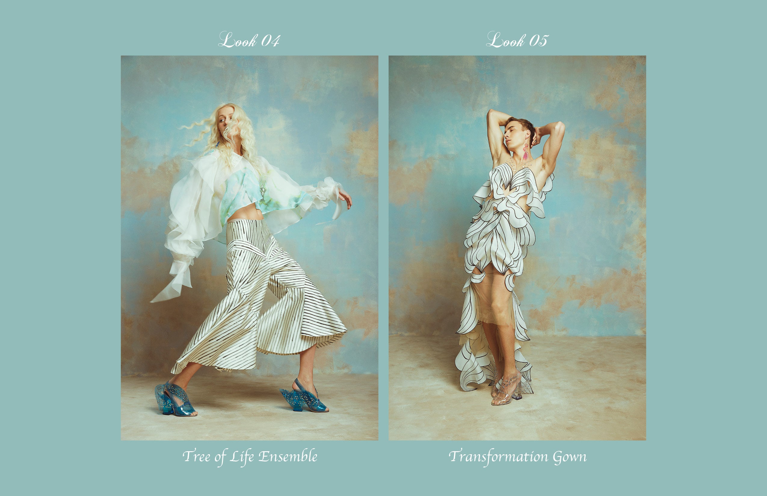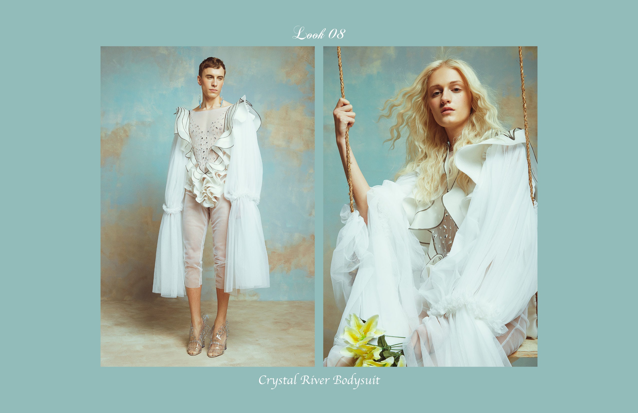 ‘Impression of Tomorrow’ envisions the atmosphere of heaven, a diverse and inclusive environment, where everyone is equally accepted, regardless of gender, ethnicity, and background. The collection is a series of poetic imagery that narrates the designer’s personal story of suppression, liberation, redemption of the past, and faith in a better future dedicated to those who fight for the fluid beauty: the impressions of transfigurative movements and gestures of true freedom and equality.