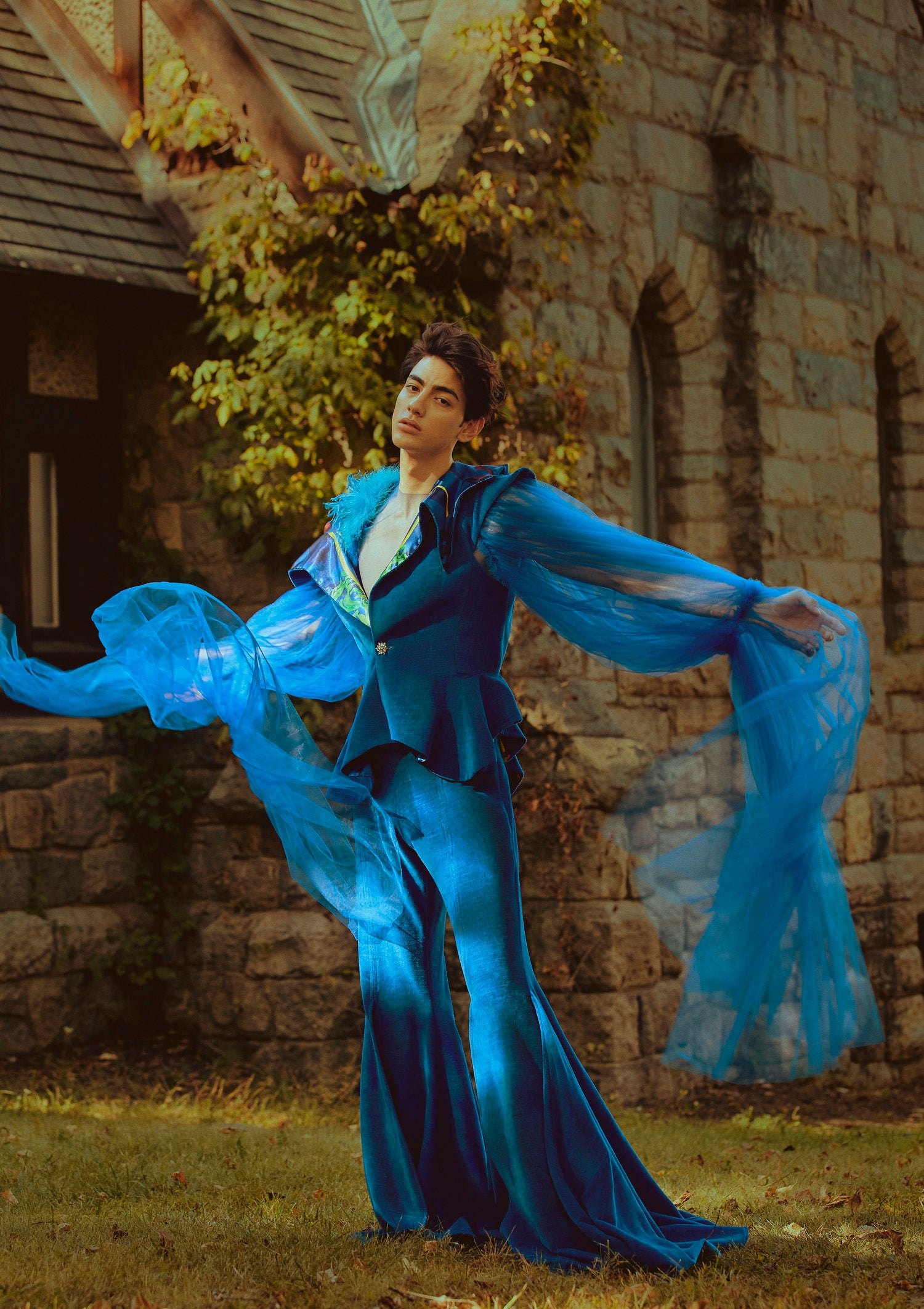 Classic Disney prince and princess designs as main inspirations, the collection juxtaposes the opposite two, masculine and feminine, in order to reimagine fluid beauty in both traditional and modern silhouettes. While mainly focusing on representing male-femininity, various styles from casual to formal and evening attire were designed to create diversity, and many possibilities to imagine what "fluidity" means in the context of contemporary fashion and society that progress towards more increased equality and inclusion. Taken inspiration from the traditional hymn, the photography series is a visualization of faith in the inheritance of a land of freedom, love, and acceptance for everyone who believes in fluid beauty.